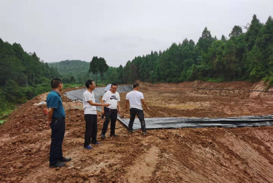 图为镇农业服务中心工作人员在项目施工现场开展质量监督