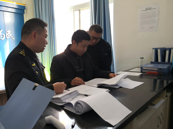 图为剑阁县纪委监委派驻县人大机关纪检监察组在元山综合执法站检查超限超载治理工作