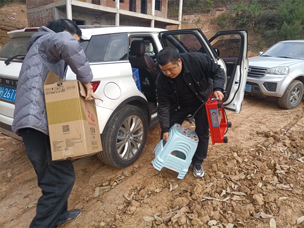 “贾书朝!出来帮忙拿东西咯!”刚到目的地,驻村第一书记杨国波就迫不及待地喊道。贾书朝是青牛镇白牛村五组村民,今年刚纳入边缘监测户,属于较困难家庭,家中老房子纳入了改建政策范围,正在重新修整,新房子刚完工驻村工作队便前去走访,在走访中发现,他新家中只有一张床,一张小木桌,一个电饭锅,这也是今天工作队在超市里购买商品的原因所在。