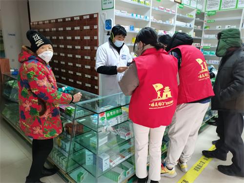 江口镇文明实践所志愿者在药店进行疫情防控指导宣传