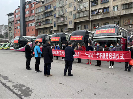 为保障农民工安全健康、温馨有序地返岗复工,剑阁县提前谋划,积极组织,按照“点对点、一站式”的原则收集剑籍农民工返岗信息,安排第一批2辆农民工返岗专车分别前往浙江宁波、嘉兴和广东中山、珠海等地,从家门直达厂门,保障农民工按时返岗复工。