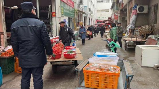 (图为执法人员对占道经营的商户进行劝导)