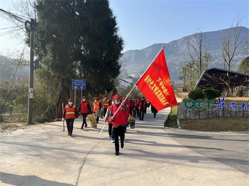 一抹红穿行于双旗美村。“群众需要什么,实践站就提供什么,群众在哪里,实践活动就延伸到哪里,我们永远不打烊!”下寺镇双旗村新时代文明实践站成立的“五丁”帮帮队伍分段划区,拿着火钳、垃圾袋、扫帚,正在对双旗美村园区道路两边的垃圾进行清理,为维护干净卫生的生活环境贡献自己的力量。