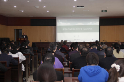 会上,该中心医务科科长谢辉向全院医师解读了《新型冠状病毒肺炎诊疗方案(试行第九版)》,重点讲解第九版的诊疗方案修订要点以及该院医生如何面对当前疫情。