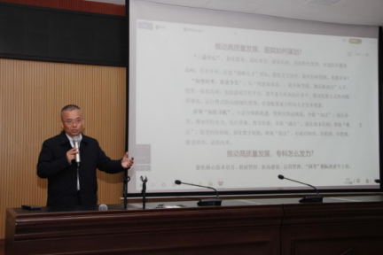 该中心主任张英辉以“推动高质量发展,医院如何谋划及专科如何发力”为题作专题报告,提出努力打造“最优服务、最好教育、最高科转”的目标。他强调,一是要知变应变,从“构建新体系、提升新效能、激活新动力”统筹一体化发展,加快建成学科平台,提升重大疾病医疗水平,推动发展方式转质增效,运行模式转向精细化管理,资源配置重点转向人才技术要素。二是知危寻机,立足行情抓机遇,聚焦院情迎挑战。争做“加法”,扬长补短,增加学科实力、医疗质量及教学质量;多做“减法”,强化成本控制;善做“乘法”,促进科技创新,强化数字赋能;敢做“除法”,打破旧制度、旧机制、旧思维,推进绩效流程改革。三是要严把医疗质量关。持续完善院科两级医疗质量体系;多管齐下强化医疗风险管控;强化临床路径与单病种质量管理。四是要完善医疗管理机制。抓疫情防控,抓正常诊疗;加强病房管理,保障患者安全;强化实验室配置,提升核酸检测能力。