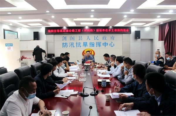 在执法检查人员完成现场问题取证后,赓即对绵苍高速项目业主、施工、监理、监测等相关单位召开绵苍高速项目水土保持问题约谈会。