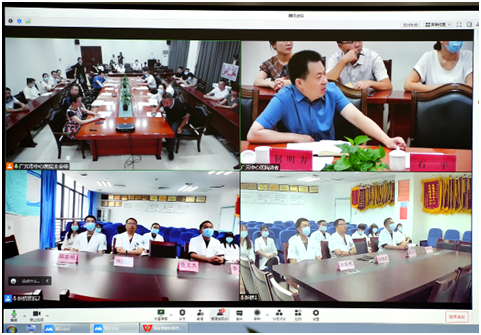 广元市中心医院党委书记石平带领医院团队20余人在院行政楼二楼一会议室与陆军军医大学新桥医院教授、神经内科主任杨清武医务团队20余人通过视频连线进行了座谈交流。
