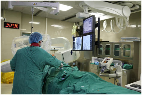 (赵浚灏为患者行全脑血管造影术及脑血管病的介入治疗)
