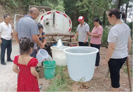 四川新闻网消息(王永红 徐安凡 李全民)8月26日,剑阁县鹤龄镇化林村十组、十一组群众高兴的到化林村村两委送水车前接水,有的人用桶提、有的人用扁担挑,场面热闹。78岁老太婆李彩华拉着化林村副主任马怀义的手说:“马主任太辛苦了哈,感谢您们大热天给我们送水。”鹤龄镇化林村已集中送水8天,送水近20余车。