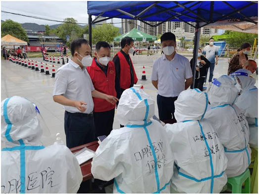 (图为该院院长王玮赴核酸采样点慰问医护人员与社区志愿者)