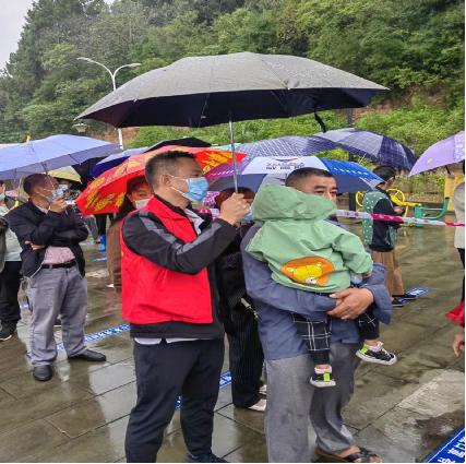 “大爷,我来帮你撑伞,你只管抱好小朋友……”在柳沟镇毛坝场镇核酸检测点现场,村民们有序排队,主动间隔,现场秩序井然。身穿“红马甲”的县委宣传部党员志愿者王富民在提醒大家扫码的同时,始终举着一把雨伞,为需要帮助的群众遮雨。有村民见了,心疼地说:“快歇会吧,我瞧你衣服都湿透了。”王富民笑着说:“没关系,你们注意别感冒了。”