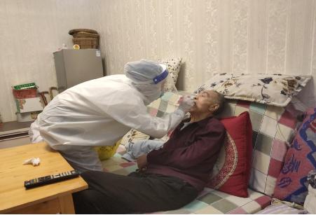 沙溪社区上门核酸采样服务队来到90多岁居民王志义家中。完成信息登记后,医务人员一边安抚王志义紧张的情绪,一边指导他张开嘴并迅速完成采样。整个流程只用了短短的5分钟。王志义告诉记者,居委会了解到自己年纪大、行动不便,详细记录了信息后,联系医务人员上门为自己进行核酸采样,暖心又快捷的服务,让他十分感激。