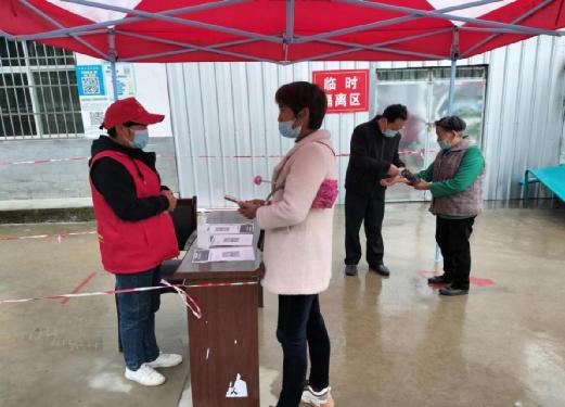 (志愿服务者指导核酸采集群众扫码、体温检测)