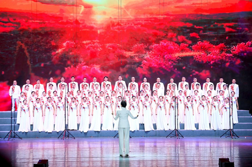 四川省职工合唱比赛于今年3月启动,来自全省各市州总工会、省直属产业(局)和企业集团工会的30支队伍激烈角逐,最终15支队伍入围决赛。苍溪县总工会牵头组织72名音乐爱好者组成“红心职工合唱团”代表广元市总工会参赛,经过200余天艰苦排练,在第四片区赛中顺利突围,以第一名的成绩挺进决赛。决赛中,苍溪“红心职工合唱团”以一曲原创无伴奏《映山映象红》歌曲合唱,迅速将现场观众带回到那个硝烟弥漫的战争年代,让观众深刻感受到革命先烈不屈不挠的革命精神和视死如归的革命乐观主义精神,充分展现出了新时代广元儿女传承红色文化庚续红色基因,积极投身社会主义现代化国家建设的豪迈气概。“苍溪红心职工合唱团”出色演绎征服了现场评委和观众,凭着9.88的高分夺得决赛第四名,荣获了四川省职工合唱比赛决赛银奖。