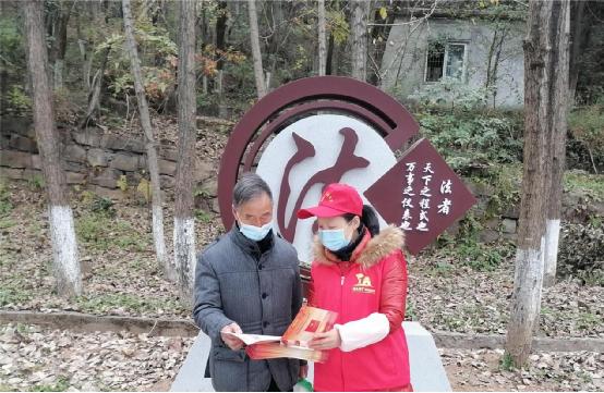 在法治文化长廊对来往的群众发放宪法宣传手册并邀请拍照打卡,增加宣传趣味性的同时也为群众讲解了宪法相关法律知识。另一边的普法小分队也在挨家挨户地为沿街商铺上门讲解宪法相关法律知识。