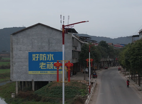 (图为:场镇路旁已安装好的新能源路灯)