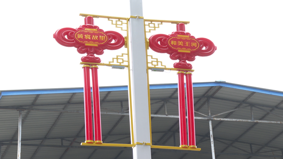 (图为:“中国结”元素的新能源路灯)