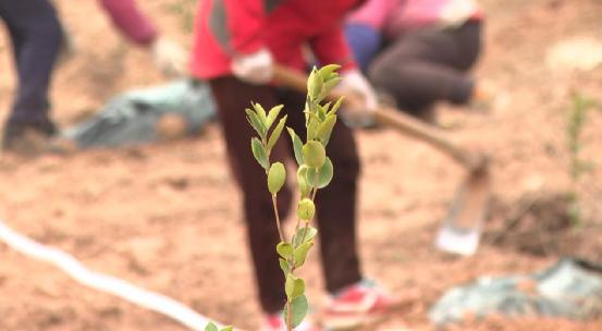 眼下正是栽种油茶树的好时节,在白龙镇健康村,业主汪洋正组织几十名村民帮忙栽植油茶树苗,大家分工协作,挥锹铲土、扶苗填坑、覆膜浇水,一派热火朝天的劳动场面。