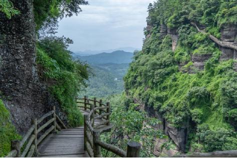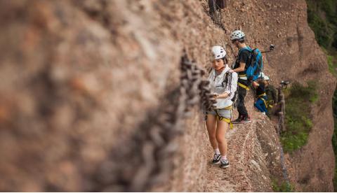 (图为游客攀爬猿猱道,体验蜀道之难)