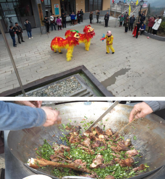 这边锣鼓喧天,舞狮子、四平调等轮番上阵;那边香味扑鼻,烤全羊、羊肉汤令人垂涎……非物质文化遗产展演活动和美食为村民们带来了浓浓的年味。活动不但一饱眼福,还能一饱口福,一碗热气腾腾的鲜美汤,一口焦香的羊肉感不仅赶走了村民们冬日的寒意,更是品尝到丰收的喜悦。
