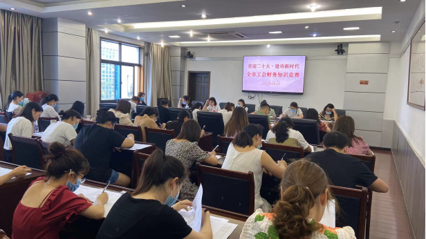 (图为2022年8月3日,市总工会举办工会财务知识竞赛,竞赛设置预算绩效答题版块,大家在“互赛互学互比”中逐步掌握相关制度、流程。)