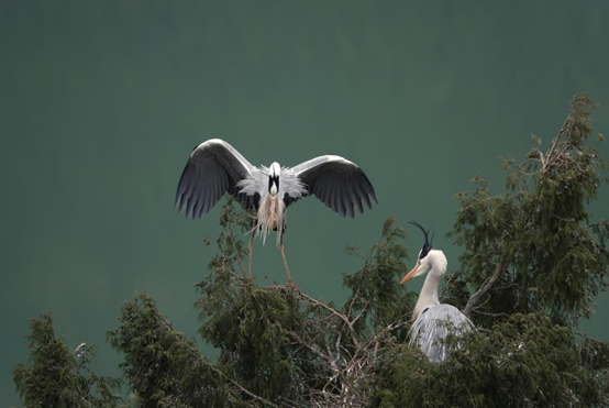 四川新闻网消息(曾正强 蒲妍如 记者 李全民)近日,随着天气回暖,广元市剑阁县江口镇嘉陵江边,成群苍鹭从南方越冬飞回,在江边柏树上筑巢安家。它们三五成群,在大树上时而嬉戏,时而翩跹起舞,构成一幅美丽和谐的最美生态风景画。