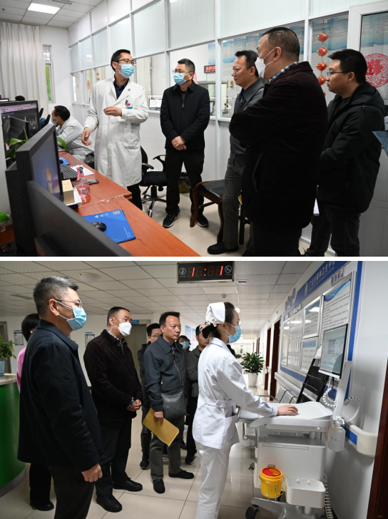 考察调研组先后深入该中心门诊大厅、放射科、神经外科等地分别查看了5G物联网机器人、导诊机器人,区域远程影像系统、AI诊断、“云胶片”,5G移动医护工作站、智慧病房等智慧医疗服务。