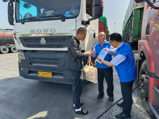 在七盘关高速服务区关爱慰问活动专区,工会志愿者向入川货车司机详细介绍了工会系统在新就业形态劳动者建会入会、法律维权、服务保障等方面的做法成效,并为他们送上了慰问包和节日的问候。