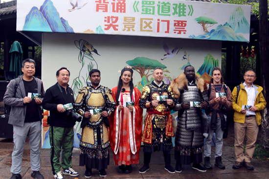 (国际媒体人参加背诵《蜀道难》活动)