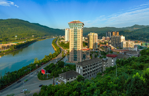 遥望剑阁县城,高22层的剑门大厦格外醒目,作为黑龙江援建剑阁县的市政建设标志性工程之一,大厦极大地提升了剑阁的城市品位。