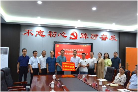 在苍溪县委党校,郑学奇详细了解了两校合作以来取得的成果,并捐赠了十万元人民币用于党校校园文化内涵提升。郑学奇强调,双方要通过拓展红色文化活动,进一步弘扬红色文化和传承革命精神;要深化支部联建活动,坚持党建引领共建,助力推动乡村振兴。并表示,学校将充分发挥自身优势,在智慧校园建设和教学基地建设方面,为苍溪县委党校提供强有力的科技与人才支撑。