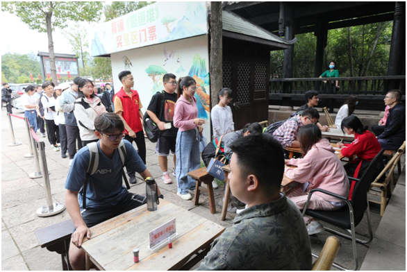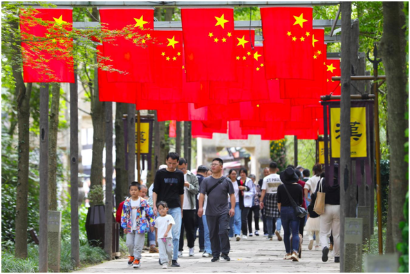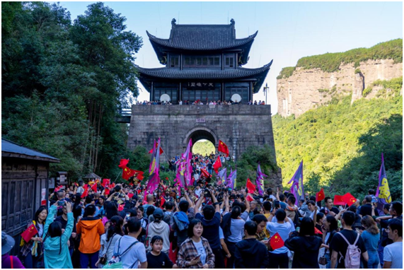 剑门蜀道剑门关景区以“江山庆华诞 国庆游剑门”为主题,推出“国旗耀剑门、诗说剑门、印在剑门”等九大文化体验活动。游客在游览剑门雄关的同时,欣赏开关仪式、国风舞蹈和特色非遗展演,与国风三国人物机甲、李白、陆游等NPC互动,打卡翠云廊和古蜀道参与古柏保护行动,赢取“蜀道古柏保护公益行动勋章”。