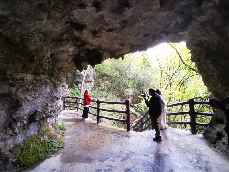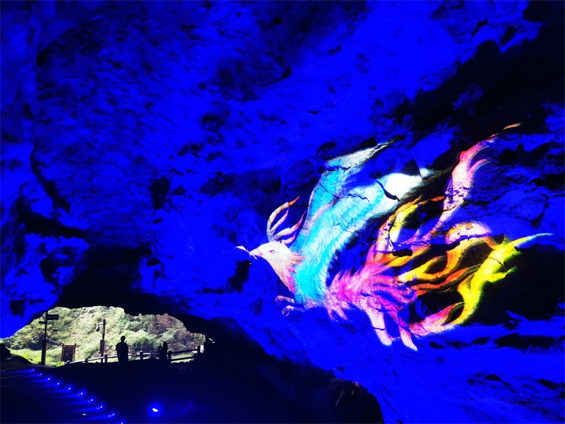 一路上,大家还不时拿出“长枪短炮”,或者是手机,记录曾家山的变化。“太漂亮了。”来到川洞天坑,焕然一新的景区大门、步游道和洞内灯光效果让大家感叹不已。洞内灯光效果以古代中国神话《山海经》为主题背景,结合灯光高科技投影技术、雾森系统等,以视觉科技为核心,将文化演艺化、知识趣味化、体验科技化,进一步为游客带来身临其境的体验。