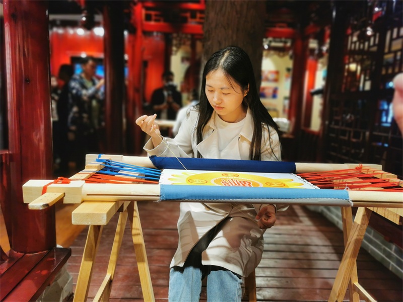 “麻柳刺绣绣工针线绵密,构思巧妙独到,线条粗犷又不失细腻,深受广大群众喜爱。”在绣女的介绍下,大家还不时体验一番。“太漂亮了。”采访的时候,一名知名博主当即买下一幅麻柳刺绣。