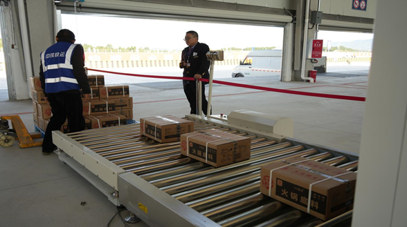 在广元公路物流(上西)园区,大小不一的快递包裹被高速运转的传送带运送到指定位置,一辆辆物流配送车从这里驶向四面八方。