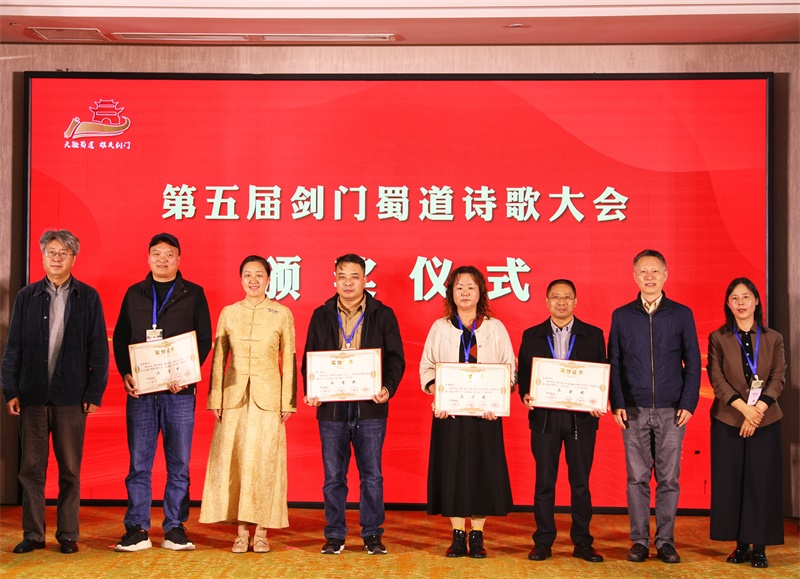 在诗歌大会现场,广元市人民政府副市长伍荣华主持了第十届《中国作家》剑门关文学奖、第五届剑门蜀道诗歌大会“天险蜀道 雄关剑门”诗歌大赛和“文学之乡”——广元诗词大赛颁奖仪式,《中国作家》剑门关文学奖一等奖获得者章泥、杨晓东,“天险蜀道 雄关剑门”诗歌大赛和“文学之乡”——广元诗词大赛获奖代表周维强、辰水等作家和诗人到现场领奖。