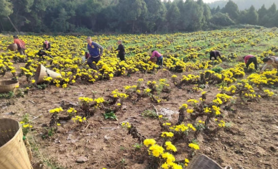 近日,石城“锅托包”的金丝皇菊进入采摘期,当地农民趁着晴好天气忙着采摘、分拣、烘烤菊花,供应市场。据悉,石城村今年金丝皇菊种植100余亩,每亩干花可以达到14斤,产值可以达到每亩4000至5000元,依托特色种植,带领当地群众增收致富。