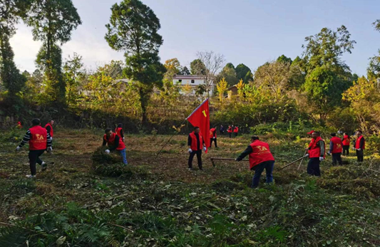 “一个支部就是一座堡垒,一名党员就是一面旗帜”。木林坝社区二组三房沟的一片撂荒地里,荒草杂树丛生,脚下黄土泥泞,却挡不住党员干部们为民办事的热情。除草、翻田、清蔓......大家分工有序,配合默契,高度集中。现场的党员干部们手中锄头翻动,镰刀纷飞,一副“披荆斩棘”的画面,两个多小时就实现了场清地平的目标。党员干部身上的红色志愿服务马甲为这个冬天带来了一抹亮色,也给这片土地带来了绿色的希望。