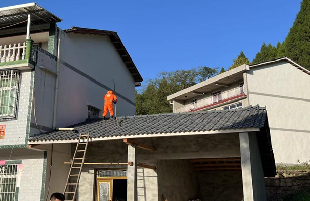 该镇安办了解情况后,第一时间制定摘除方案,并联系消防部门,请专业人员帮助居民消除隐患。为确保本次行动顺利开展,保护村民的生命安全,镇村组干部疏散周围的群众至安全区域并关闭好门窗。由于马蜂窝位置较高,为确保万无一失,消防队员穿好防蜂服,爬上房顶,先用杀虫剂喷射马蜂,再用事先准备好的袋子成功摘除马蜂窝,为防止马蜂在原址筑巢再次扰民,使用杀虫剂对残留蜂巢进行彻底清理,安全隐患得到有效根除。“辛苦了,他们在现场忙碌了2个多钟头,以后房前屋后进进出出再也不会担惊受怕了。”母延洪甚是感激。