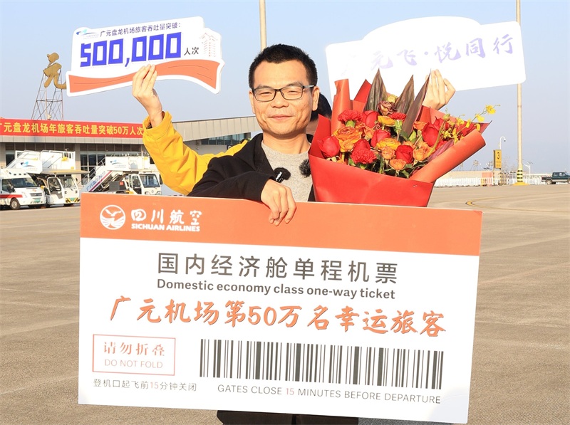 四川新闻网消息(管寒冰 记者 李全民)11月30日15时50分许,随着四川航空由昆明飞往广元的3U8247航班平稳落地,广元盘龙机场迎来了今年的第50万名旅客,这也是该机场年旅客吞吐量首次突破50万人次。