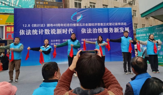 四川新闻网消息(钟婧 记者 李全民)2023年12月8日是《统计法》颁布40周年纪念日。剑阁县统计局、国家统计局剑阁调查队、普安镇人民政府联合开展“依法统计数说新时代·依法治统服务新发展”主题宣传活动,现场开启剑阁县第五次全国经济普查宣传月启动仪式。