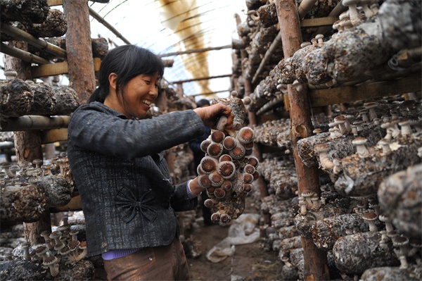 (利州区白朝乡脱贫户发展香菇持续增收。)
