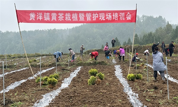 (黄洋镇采取“支部引领+集体带动+农户参与”方式,带动180余户脱贫户种植黄茶持续增收。)