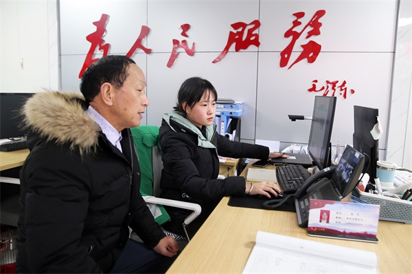 昭化区昭化镇群众曾元发(左)通过“村能办”视频审批设备进行社保查询。