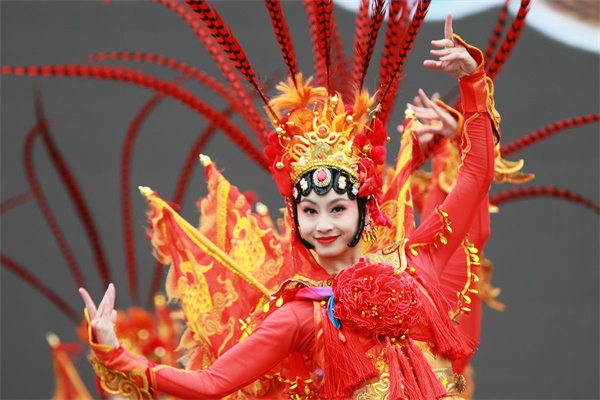 演出现场,取材于巾帼英雄花木兰替父从军故事的舞蹈《英姿》,引得现场观众掌声不断。舞蹈《英姿》在表达形式上突出了传统文化艺术戏曲的魅力,将戏曲的服装、靠旗、翎子等充分融合,呈现了“巾帼不让须眉”的英雄豪气,向观众传递艺术之美、叙事之美、动感之美。“每年同心艺术团的节目都是抽调的四川省各个优秀的团队,而且节目基本上都得过国家级的大奖。今天天气很寒冷,但台下观众的热情度很高,台上演员的表演也更有劲了。”导演钟颖姗说,“这次节目中我们融入了蜀道、剑门关诗词等元素,既传承了优秀的传统文化,又丰富老百姓的精神生活。希望通过我们的演绎把更好的作品、更好的精神食粮带到田间地头,送到广大群众的身边。”