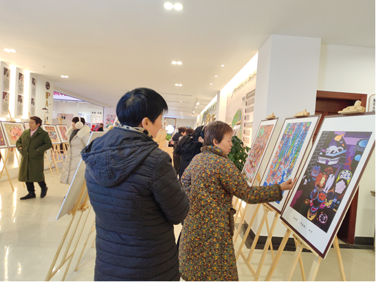在文明实践中心一楼大厅,百余幅精美年画展示了新时代人民生活新画卷,展现了新时代文明实践的新成果,反映了城乡融合发展的崭新风貌,倡导了文明健康的新风尚。一幅幅色彩鲜艳、栩栩如生的年画,弥漫着浓厚的节日氛围,营造出欢乐、和谐、温馨的气氛。