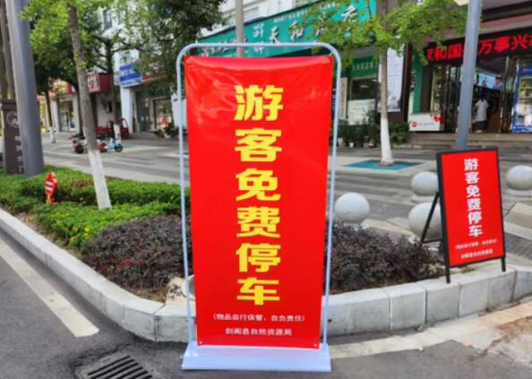 剑阁县城区相关单位及涉旅乡镇将“免费停车”的指示牌摆放在醒目位置,停车场内张贴温馨提示,并安排专人值守,对游客停车引导、场内安全、卫生保洁进行管理。解决游客“停车难”问题,让游客安心出行、放心游玩。