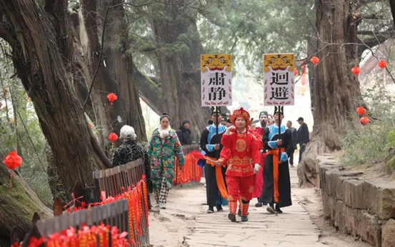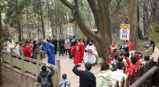 从正月初一开始,翠云廊景区每天推出两场“点树交印”古制巡演,演员们身着明代官服,以古柏保护与传承为故事线,在千年古柏树下实景演绎离任知州、接任知州走马点树、交树交印的场景。游客们沉浸在演绎之中,亲身体验到传统文化的别样魅力。
