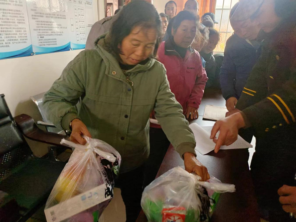 (村民排队兑换“家庭道德积分”物质奖励)
