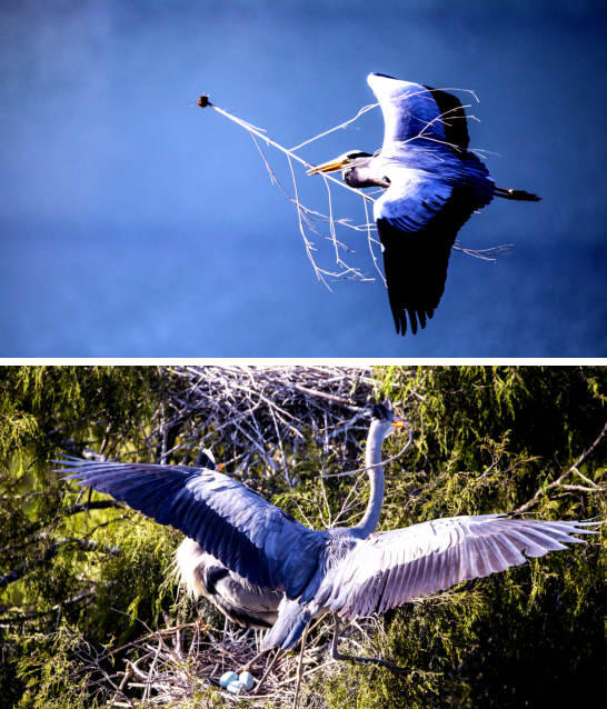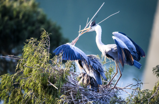 四川新闻网消息(李自公 记者 李全民)春日枝头,展翅高飞。开春以来,在山青水秀的剑阁县江口镇嘉陵江亭子湖畔,成群的苍鹭成双成对在这里安家繁衍生息。
